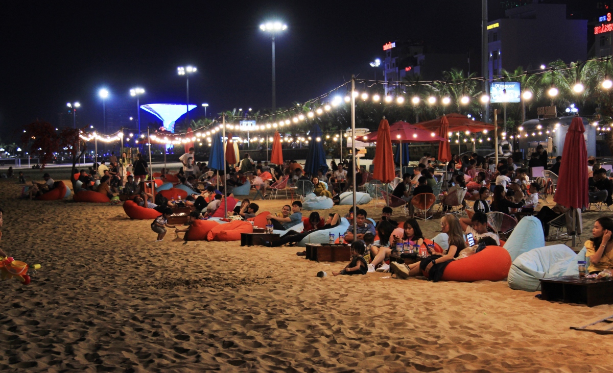 ហាងកាហ្វេនៅឆ្នេរសមុទ្រ Quy Nhon នាពេលរាត្រី (រូបថត៖VOV ) |