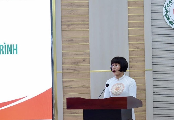 លោកស្រី Pho Cam Hoa ប្រធានគណៈកម្មាធិការកិច្ចការបរទេស VOV5 អញ្ជើញថ្លែងក្នុងពិធី |