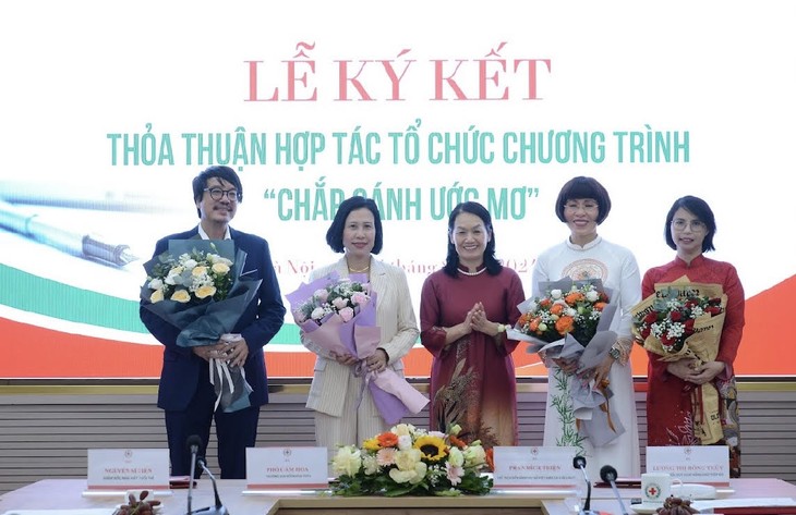 នាថ្ងៃទី ២១ ខែសីហា ឆ្នាំ ២០២៤ នៅទីស្នាក់ការកាកបាទក្រហម វៀតណាមនៅទីក្រុងហាណូយ មូលនិធិសកម្មភាពកាកបាទក្រហមបានសម្របសម្រួលជាមួយគណៈកម្មការកិច្ចការបរទេស នៃវិទ្យុសម្លេងវៀត ណាម (VOV5) រោងមហោស្រពយុវជន និងវេទិកានារីវៀតណាមនៅអឺរ៉ុបបានចុះហត្ថលេខាលើកិច្ចព្រមព្រៀងសហប្រតិបត្តិការ រៀបចំកម្មវិធី "ផ្តល់ស្លាបសម្រាប់បំពេញក្តីសុបិន"។