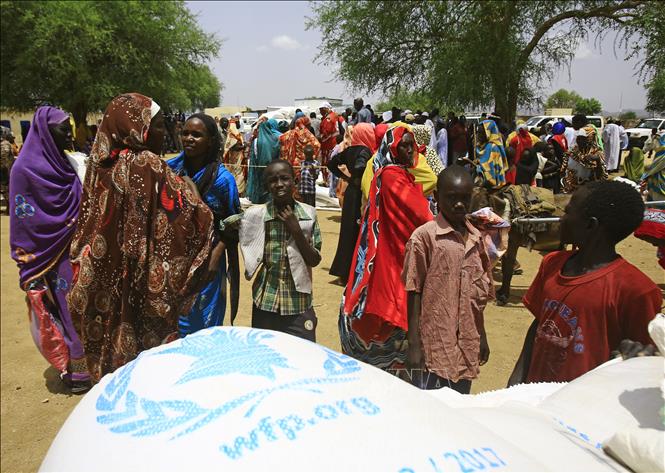 ជនភៀសខ្លួនតម្រង់ជួរដើម្បីទទួលបានជំនួយស្បៀងអាហារនៅរដ្ឋ South Kordofan ប្រទេសស៊ូដង់ (រូបថតឯកសារ៖ AFP/TTXVN) |