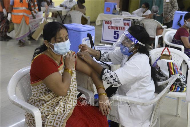 បុគ្គលិកពេទ្យចាក់វ៉ាក់សាំងជូនពលរដ្ឋនៅ Hyderabad ប្រទេសឥណ្ឌា។ (រូបថត៖ AFP/VNA) |