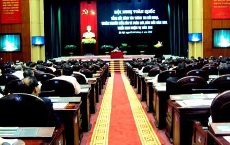 បូកសរុបការងារព័តមាន កិច្ចការបរទេស ផ្សព្វផ្សាយសមុទ្រ កោះ និងកំណត់ បោះបង្គោលព្រំដែន ឆ្នាំ 2011 អនុវត្តភារកិច្ចឆ្នាំ 2012។ ថ្លែងមតិនៅសន្និសីទ លេខាមជ្ឈឹមបក្សកម្មុយនីស្តវៀតណាម ប្រធានគណះកម្មាធិការឃោសនា អប់រំមជ្ឈឹម និងជា ប្រធានគណះកម្មាធិការបញ្ជាណែនាំការងារព័តមានកិច្ចការបរទេស