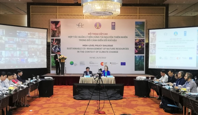 នាព្រឹកថ្ងៃទី ២៦ សីហា នៅទីក្រុងហាណូយ ក្រសួងកសិកម្ម និងអភិវឌ្ឍន៍ជនបទវៀតណាមបានសហការជាមួយកម្មវិធីអភិវឌ្ឍន៍នៃអង្គការសហប្រជាជាតិ (UNDP) ប្រចាំនៅវៀតណាមរៀបចំ “កិច្ចសន្ទនាគោលនយោបាយកម្រិតខ្ពស់ស្តីពីកិច្ចសហប្រតិបត្តិការគ្រប់គ្រងធនធាន ធម្មជាតិប្រកបដោយនិរន្តរភាពក្នុងបរិបទនៃការប្រែប្រួលអាកាសធាតុ”។ កិច្ចសន្ទនានេះមានគោលបំណងផ្តល់ព័ត៌មាន ផ្លាស់ប្តូរ និងផ្តល់យោបល់ដល់ក្រសួងកសិកម្ម និងអភិវឌ្ឍន៍ជនបទ និងអង្គភាពពាក់ព័ន្ធ ដើម្បីអនុវត្តន៍ប្រកបដោយប្រសិទ្ធភាព និងធានាការសម្រេចឲ្យបាន គោលដៅអភិវឌ្ឍន៍ប្រកបដោយចីរភាព។ ទន្ទឹមនឹងនោះ អនុវត្តន៍ការផ្លាស់ប្តូរទៅជាគំរូឆ្ពោះទៅបៃតង មេត្រីភាពជាមួយបរិស្ថានការបំភាយឧស្ម័នទាប និងការសម្របខ្លួនទៅនឹងការប្រែប្រួលអាកាសធាតុ ការអភិវឌ្ឍ ផ្សារភ្ជាប់ជាមួយការអភិរក្សធនធានធម្មជាតិ ដូចមានចែងក្នុងយុទ្ធសាស្ត្រ អភិវឌ្ឍ កសិកម្ម និងជនបទប្រកបដោយនិរន្តរភាពដំណាក់កាល ២០២១-២០៣០ ចក្ខុវិស័យដល់ឆ្នាំ ២០៥០ ដែលចេញដោយរដ្ឋាភិបាលវៀតណាម។ បទអន្តរាគមន៍ក្នុងកិច្ចសន្ទនានេះបានចែករំលែកបទពិសោធន៍ពីគំរូសហគ្រប់គ្រង