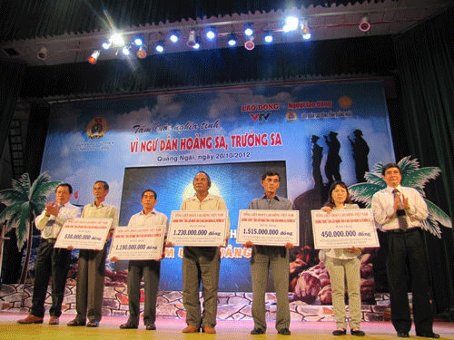 ក្រុង មានអ្នកនេសាទដែលកំពុងនេសាទត្រីនៅ ប្រជុំកោះ Hoang SaនិងTruong Sa ស្រារជ្រាវដើម្បីផ្ញើប្រាក់ដល់ដៃរបស់ជនរងគ្រោះតាមរយះអង្គការពលករមូលដ្ឋាន