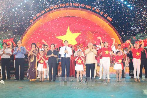 កម្មវិកធីសិល្បះ” មហាគ្រួសារបណ្តាជ នជាតិវៀតណាមរួមដៃកសាងនិងការពារមាតុ ប្រទេស “បានប្រព្រឹត្តទៅនាយប់ថ្ងៃទី២៨មិថុនា(រូបថតVNA) |
