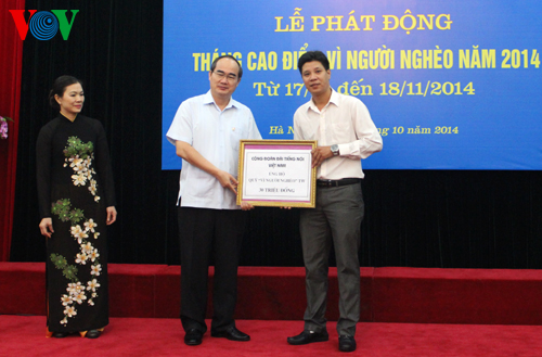 រណសិរ្សមាតុភូមិវៀតណាម បានរៀបចំពិធីបំផុសខែកំពូលដើម្បីជនក្រីក្រឆ្នាំ២០១៤ (ពីថ្ងៃទី១៧តុលាដល់ទី១៨វិច្ឆិកា)។ក្នុងរយៈពេល៩ខែកន្លងទៅ បណ្ដាអង្គការ បុគ្គល