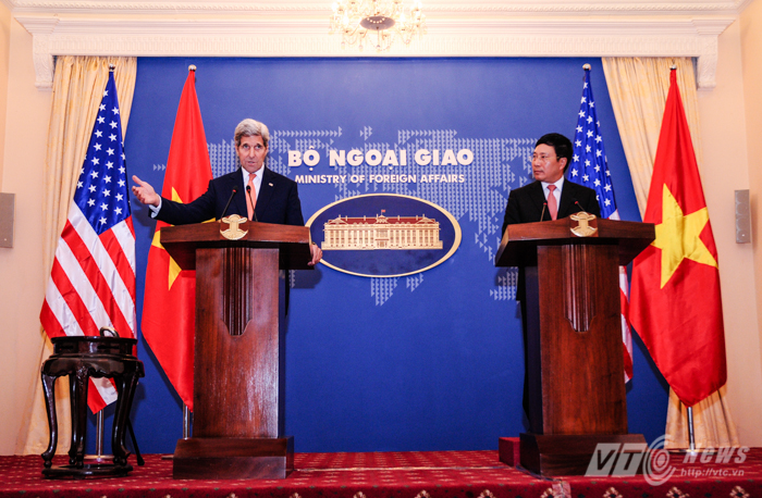 ក្នុងថ្ងៃដដែល ឧបនាយករដ្ឋមន្ត្រី រដ្ឋមន្ត្រីការបទេសវៀតណាម Pham Binh Minhនិងរដ្ឋមន្ត្រីការបរទេសអាមេរិក John Kerry ធ្វើជាអធិបតីសន្និសីទកាសែត ជូនដំណឹងអំពីលទ្ធផលនៃកិច្ចចរចារក៏ដូចជាឆ្លើយសំនួរមួយចំនួនរបស់អ្នកយក