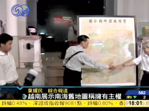 | បណ្ដាស្ថាប័ន ផ្សព្វផ្សាយធំៗ របស់ចិន បានចុះផ្សាយ អំពីការដែល វៀតណាម រកឃើញផែនទីបុរាណរបស់ចិនបញ្ជាក់ ប្រជុំ កោះ Hoang Sa និងប្រជុំកោះ Truong Sa គឺរបស់វៀតណាម(http://phapluattp.vn) |
