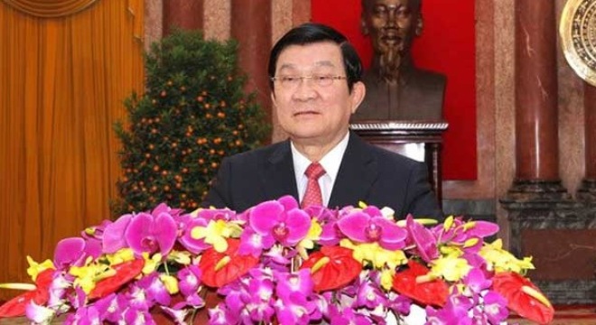 | សេចក្តីជូនពរឆ្នាំថ្មីឆ្នាំវកអដ្ឋស័ក ២០១៦ របស់ប្រធានរដ្ឋវៀតណាម Truong Tan Sang (Image: soha.vn) |