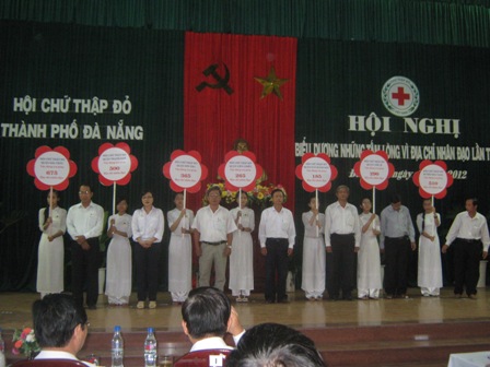 បណ្ដា ទឹកចិត្តដើម្បីទង្វើមនុស្សធម៌ឆ្នាំ២០១២ ។ ឆ្នាំ ២០១២ សមាគមកាកបាត ក្រហមគ្រប់ជាន់ថ្នាក់នៅទីក្រុង Da Nang បានចលនាអង្គការ បុគ្គលចំនួនជាង ១០០០ នៅក្នុងនិងក្រៅប្រទេសរៃអង្គាសប្រាក់ចំនួនជាង ៧,៦ពាន់ លានដុង តាម រយះសកម្មភាព ដូចជា÷ កសាងផ្ទះស្នាក់នៅ ប្រគល់ជូនមធ្យោបាយរកស៊ី ផ្តលអា