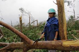Binh ជាកន្លែងមានដើមកៅស៊ូជាច្រើនត្រុវដួលដោយសារខ្យល់ព្យុះ។ លោក Le