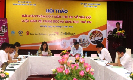 | សន្និសីទការសែតអំពីវេទិការអំពីកុមាជាតិឆ្នាំ ២០១៣ ដោយប្រធានបទ “កុមាចូលរួម ផ្តល់មតិចំពោះការធ្វើវិសោធនកម្មច្បាប់ការពារថែទាំនិងអប់រំកុមា” (Image: Vietnamplus) |