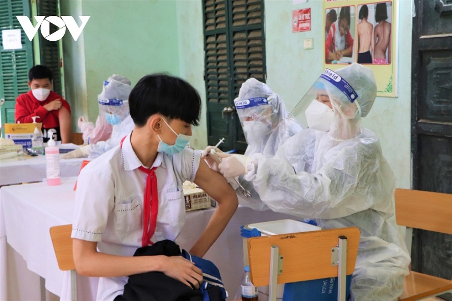 សកម្មភាពចាក់វ៉ាក់សាំងបង្ការកូវីដ ១៩ ជូនសិស្សានុសិស្សដែលមានអាយុចាប់ពី ១២ ទៅ ១៨ ឆ្នាំនៅខេត្ត Dien Bien |