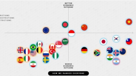 (VOVWORLD) - នៅក្នុងដ្យាក្រាមវាយតម្លៃលទ្ធផលសុខភាពសហគមន៍និងសេដ្ឋកិច្ចរបស់ប្រទេសជាតិ គេហទំព័រ politico.com បានបង្កើតផែនទីប្រសិទ្ធភាពរបស់ប្រទេសនាំមុខគេចំនួន ៣០ ក្នុងការងារប្រយុទ្ធប្រឆាំងនឹងជំងឺរាតត្បាត COVID-19 ក្នុងនោះ វៀតណាមបានជាប់ចំណាត់ថ្នាក់ខ្ពស់បំផុតផងដែរ។