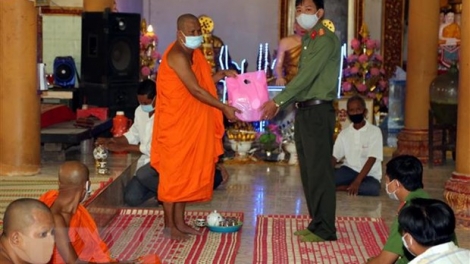 (VOVWORLD) - ដើម្បីជម្រុញការងារឃោសនាស្តីពីការបង្ការនិងប្រយុទ្ធប្រឆាំងនឹងជំងឺ Covid-19 នៅតាមតំបន់នានាដែលមានជនរួមជាតិខ្មែររស់នៅ ជាពិសេសក្នុង ឱកាសបុណ្យចូលឆ្នាំថ្មីប្រពៃណីខ្មែរកំពុងរំកិលមកដល់នោះ នាថ្ងៃទី ៩ ខែមេសាក្រុមការងាររបស់នគរបាលខេត្ត Soc Trang បានចុះទៅតាមទីវត្តព្រះពុទ្ធសាសនានិកាយថេរវាទខ្មែរនៅខេត្តនេះ ដើម្បីឃោសនាផ្សព្វផ្សាយអំពីការងារបង្ការនិងប្រយុទ្ធប្រឆាំងជម្ងឺ Covid-19។