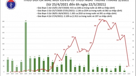 (VOVWORLD) - ដូច្នេះ គិតត្រឹមវេលាម៉ោង៦ថ្ងៃទី២២ខែឧសភា វៀតណាមមានករណីឆ្លងកូវីដ ១៩ ក្នុងប្រទេសសរុបចំនួន ៣៤៨២ ករណី និងករណីនាំចូលចំនួន១៤៧៩ ករណី។ ចំនួនករណីឆ្លងថ្មីគិតចាប់តាំងពីថ្ងៃទី២៧ ខែមេសា មក មានចំនួន ១៩១២ ករណី។