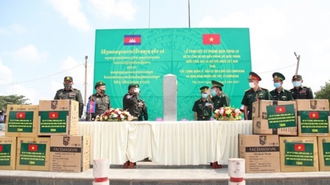 បញ្ជាការដ្ឋានកងទ័ពការពារព្រំដែនវៀតណាមប្រគល់ជំនួយជាសម្ភារៈបរិក្ខារពេទ្យបង្ការប្រឆាំង កូវីដ ១៩ ជូនចំពោះកម្ពុជានិងឡាវ