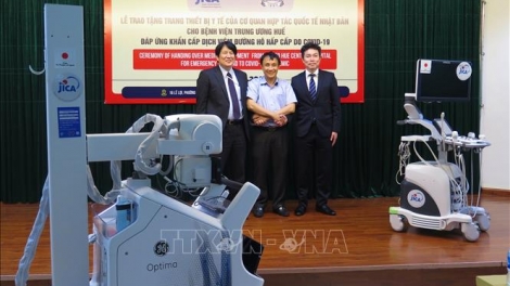 (VOVWORLD) - នាថ្ងៃទី ៩ ខែមេសា ស្ថាប័នសហប្រតិបត្តិការអន្តរជាតិជប៉ុន (JICA) បានប្រគល់ជូនសម្ភារៈបរិក្ខារពេទ្យដល់មន្ទីរពេទ្យមជ្ឈិម Hue ដើម្បីឆ្លើយតបជាបន្ទាន់ចំពោះការបង្ការនិងប្រយុទ្ធប្រឆាំងនឹងជំងឺរាតត្បាតកូវីដ-១៩។