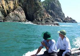 ទេសចរទៅទស្សនាឈូងសមុទ្រ Xuan Dai។ក្នុងចំណោមកោះនៅទីនេះ Nhat Tu Son ជាកោះស្អាតជាងគេ។កោះ Nhat Tu Son ដែលលេចឡើងនៅលើផ្ទៃទឹកសមុទ្រ ប្រហែល