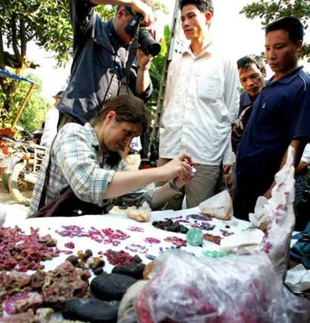 | នៅក្នុងផ្សារមានតូបលក់ត្បូងប្រមាណជាង២០កន្លែងដែលដាក់លក់ត្បូងបានឆ្នៃនិងកំទិចត្បូងដោយមានតំលៃពីរាប់សែនដុងដល់រាប់លានដុង(រូបថតdaquylucyen.net.vn) |