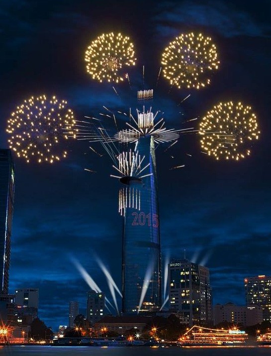 | ក្នុងប៉ុន្មានឆ្នាំកន្លងទៅនេះឃុនដូ Bitexco Financial Tower ជាកន្លែងបាញ់កាំជ្រួចផ្កាសារទឆ្នាំថ្មី(រូបថតnewszing) |