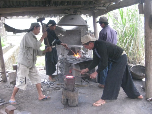 Mong ពេលដែលលោកកំពុងដំដែកធ្វើផាលនង្គ័ល។ តាមរយៈការជួបសំណេះ សំណាលជាមួយជាងដំដែកនៅ Ban Pho យើងខ្ញុំបានឃើញថា គ្មានអ្នកណាដឹងថារបរដំដែកនៅទីនេះមានកំណើតកាលណាឡើយ ដោយត្រឹមតែដឹងថា
