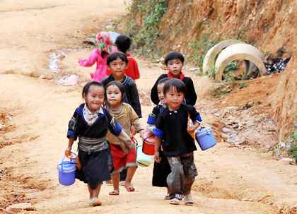 ទេសចរណ៍នេះខ្ញុំបានចុះជូនអំណោយឲ្យកុមារនៅ Sung La ស្រុកYen Minh “។