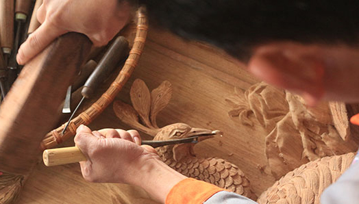 ស្ថិតនៅឃុំ Luong Dien ស្រុក Cam Giang ខេត្ត Hai Duong ដែលមាន ចម្ងាយប្រមាណ ៤៥គីឡូម៉ែត្រពីប៉ែកខាងកើតរដ្ឋធានីហាណូយ ភូមិឆ្លាក់ឈើ វិចិត្រសិល្បៈ Dong Giao មានប្រវត្តិ សាស្ត្រឡើងដល់ទៅ៣០០ឆ្នាំហើយ។ ប្រសិនបើមកដល់ភូមិ Dong Giao យើងនឹងឃើញដោយផ្ទាល់ភ្នែកផលិតផល ឆ្លាក់ឈើដ៏ល្អប្រណិតយ៉ាងច្រើនលើសលុប ត្រូវបានដាក់លក់នៅតាមហាងនិង មូលដ្ឋានសិប្បកម្មនានា។