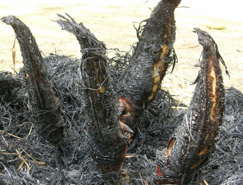 ម្ហូបត្រីដុត។ដើម្បីធ្វើម្ហូបនេះ​គេ​យកត្រីរ៉សមកដោតបញ្ឈរនឹងបន្ទះឬស្សីរួច
