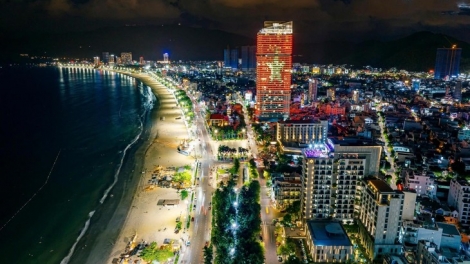 គយគន់ទីក្រុងឆ្នេរសមុទ្រ Quy Nhơn ខេត្ត Gia Lai នាពេលរាត្រី