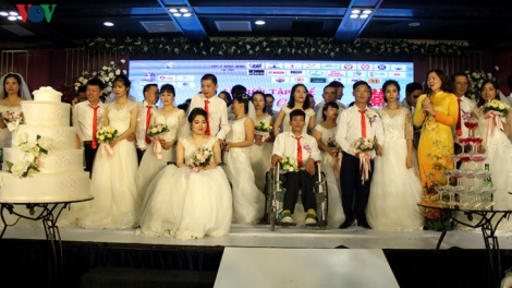 (VOVWORLD) - ក្នុងឱកាសរំលឹកខួបទិវាគ្រួសារវៀតណាម ថ្ងៃទី២៨ ខែមិថុនា សម្ព័ន្ធសមា គមន៍នារីទីក្រុងហាណូយបានរៀបចំកម្មវិធីរៀបអាពាហ៍ពិពាហ៍ជាសមូហភាព ដើម្បីប្រែក្លាយក្ដីសុបិន្តដ៏សាមញ្ញ របស់បណ្ដាគូស្នេហ៍ជាជនពិការនិងជនក្រីក្រ នោះ ទៅជាការពិត។