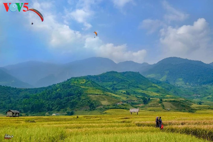 ក្រៅពីការគយគន់ទេសភាពដ៏អស្ចារ្យទាំងនេះ ព្រមទាំងការស្វែងយល់អំពីជីវិតរស់ នៅរបស់ប្រជាជននោះ គឺនៅតែមានសកម្មភាពដែលរំពឹងទុកនៅក្នុងពិធិបុណ្យនេះគឺ Festival Parasailing (ជិះឆ័ត្រយោងលើអាកាស) ដោយក្រោមប្រធានបទ “ហោះហើរលើរដូវកាលស្រូវទុំ” ។ សកម្មភាពនេះតែងតែទាក់ទាញបានអ្នកអាកាសយានិកទាំងក្នុងប្រទេសនិងអន្តរជាតិចូលរួមយ៉ាងច្រើនកុះករ។ នេះក៏ត្រូវបានចាត់ទុកជាចំណុចលេចធ្លោដែលបង្កើតឡើងនូវភាពទាក់ទាញដ៏ពិសេសសម្រាប់ពិធីបុណ្យនៅ Mu Cang Chai ផងដែរ ។
