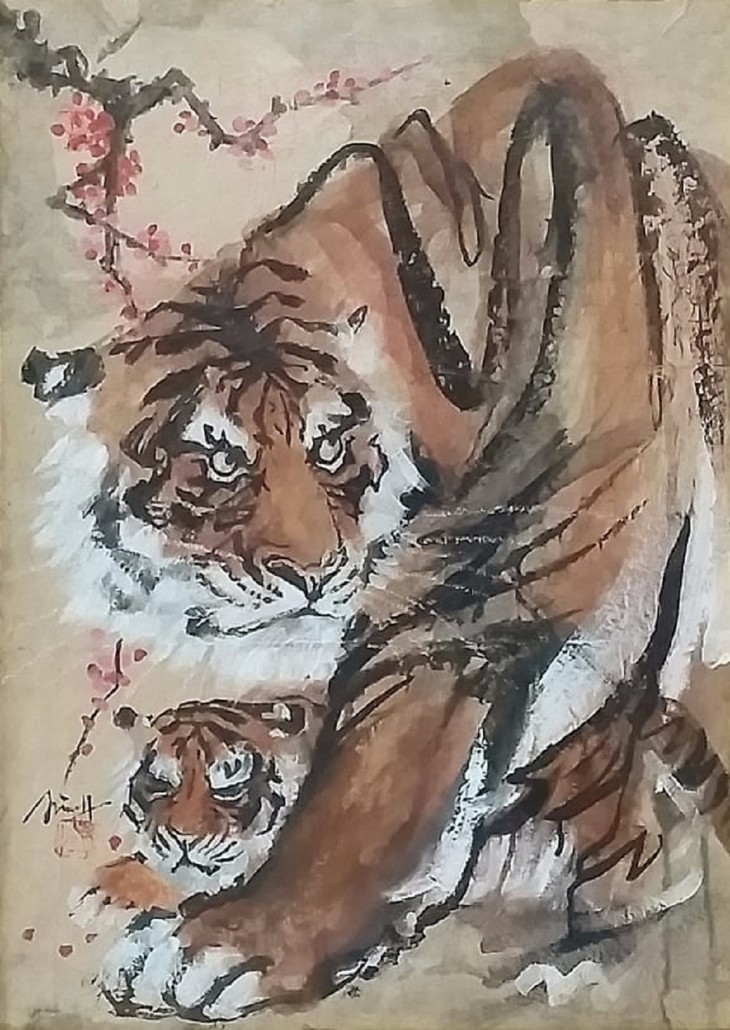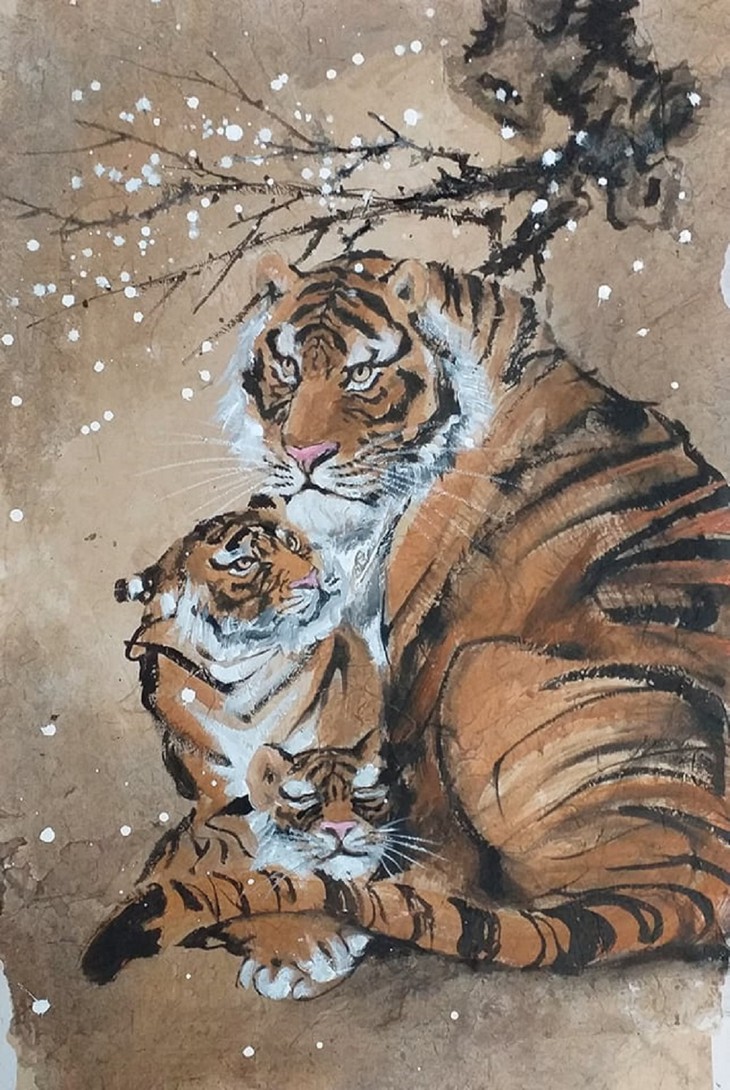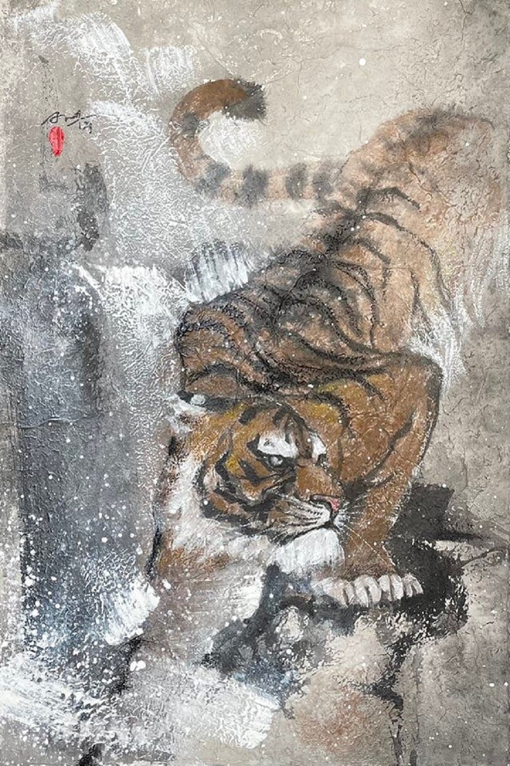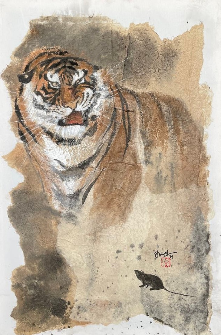 តាមរយៈគំនូរខ្លា វិចិត្រករ Nguyen Doan Ninh មានគោលបំណងអំពីឆ្នាំថ្មី ឆ្នាំខាល ចត្វាស័ក ២០២២ ដែលពោរពេញទៅដោយភាពខ្លៀវក្លា និងមនោសញ្ចេតនា។
