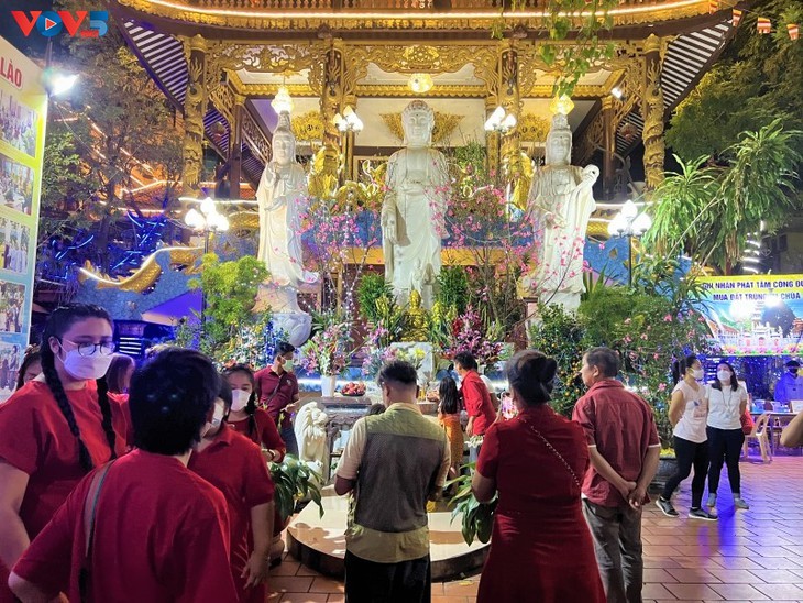 ប្រជាជនទៅវត្ត Vinh Nghiem ដែលជាវត្តដ៏ល្បីល្បាញបំផុតមួយនៅក្នុងទីក្រុងហូជីមិញ (រូបថត៖ B.D./danviet.vn)