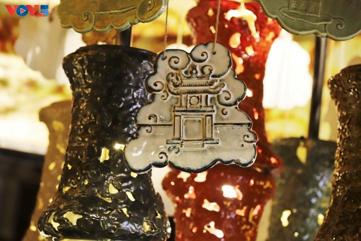 ស្នាដៃ "ចម្លាក់" របស់វិចិត្រករ Vu Xuan Dong រួមមានចង្កៀងរូបគ្រាប់ស្រូវអង្ករជាមួយនឹងក្បូរក្បាច់ត្រូវបានគូរដោយដៃ ចាប់ពីសម័យវប្បធម៌ដុងសឺន ដល់រាជកាលស្តេច Dinh, Ly, Tran, Le, Nguyen ដែលរំឮកដល់របរឆ្លាក់ពីសំរិទ្ធ និងប្រាក់ដ៏ល្បីល្បាញ។