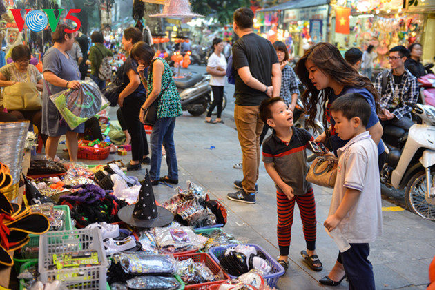 | ពេលដែលរដូវ Halloween មកដល់ម្តងៗ វិថី Hang Ma នៃទីក្រុងហាណូយ កាន់តែអ៊ូអរសប្បាយ ពោរពេញទៅដោយហាងលក់ប្រដាប់លេងចម្រុះពណ៌និងគ្រឿងតុបតែងមានរូបភាពចម្លែក។ |