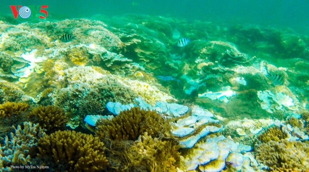 | ផ្កាថ្មរីកលូតលាស់ពេញឆ្នេរសមុទ្រ Ganh Yen។ |