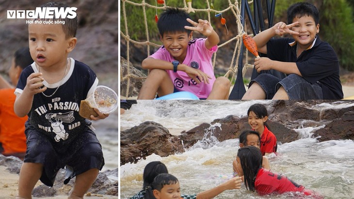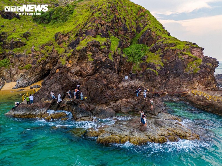 នៅចុងសប្តាហ៍ ភ្ញៀវទេសចររាប់រយនាក់ទាំងក្នុងនិងក្រៅខេត្តបានមកស្វែងយល់ ពិសោធន៍ និង check-in នៅវាលថ្ម Hoai Hai។