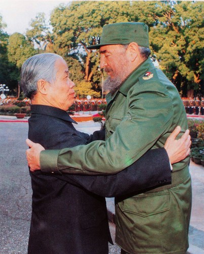 លោក Do Muoi ទទួលជួបជាមួយលោក Fidel Castro ប្រធានក្រុមប្រឹក្សារដ្ឋគុយបានាឆ្នាំ១៩៩៥ |
