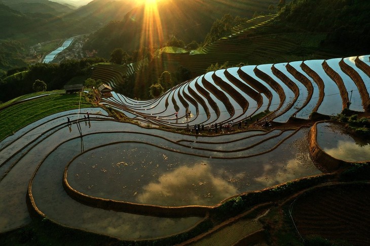| មិនត្រឹមតែទាក់ទាញមនុស្សដោយរដូវស្រូវទុំពណ៌មាសដ៏គួរឲ្យទាក់ភ្នែក ប៉ុណ្ណោះទេ Mu Cang Chai ក៏មានភាពទាក់ទាញដោយទេសភាពដ៏រ៉ូម៉ែនទិកនៃរដូវទឹកឡើង (ចាប់ពីខែឧសភាដល់ខែមិថុនា)។ (រូបថត៖ baotainguyenmoitruong.vn) |