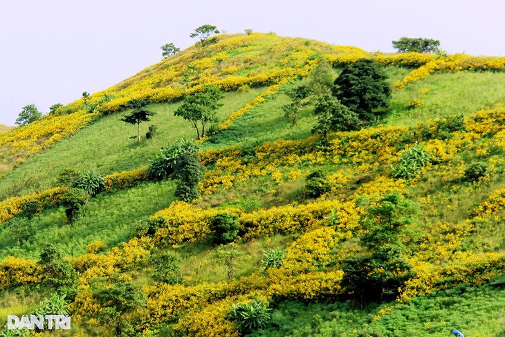ផ្កាឈូករ័ត្នព្រៃរីកពណ៌លឿងភ្លឺនៅលើភ្នំ និងផ្លូវជុំវិញភ្នំភ្លើងដែលមានអាយុកាលរាប់លានឆ្នាំ។ រូបថត៖ tienphong.vn