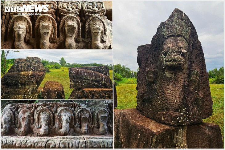 | កត្តាមួយ ដែលបង្ហាញយ៉ាងច្បាស់ពីឥទ្ធិពលនៃវប្បធម៌ខ្មែរ គឺរូបពស់នាគរាជ មានក្បាល ១ ក្បាល ៣ ក្បាល ៥... បន្ទាប់ពីការជីកកកាយចំនួន៣លើកនៅប្រាសាទ Duong Long ក្នុងគោលបំណងជួសជុលឡើងវិញ នៅឆ្នាំ២០០៦ ឆ្នាំ ២០០៧ និងឆ្នាំ ២០០៨ បុរាណវិទូបានរកឃើញចម្លាក់ថ្មក្នុងបរិមាណធំ ដែលភាគច្រើនបង្ហាញពីប្រធានបទពស់នាគ។ |