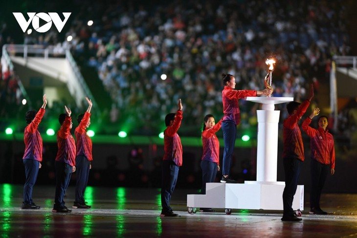 វិមានភ្លើងគប់នៅពហុកីឡាដ្ឋាន My Dinh ត្រូវបានដុតបំភ្លឺជាផ្លូវការ។ រូបថត៖ Vu Toan/VOV |
