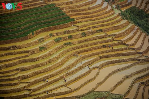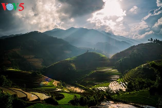 | វាលស្រែទឹក Tu Le ស្អាតអស្ចារ្យក្រោមកាំរស្មីព្រះអាទិត្យនាពេលរសៀល។ មកដល់ តំបន់ Mu Cang Chai ដើម្បីគយគន់និងទស្សនានូវគំនូរកម្រមានរបស់តំបន់ព្រៃភ្នំ |