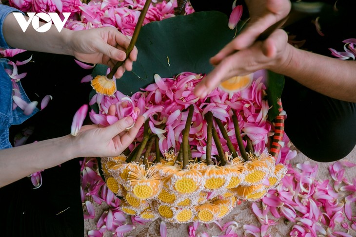 ផ្នែកស្នូលនៃលម្អងផ្កា បន្ទាប់ពីត្រូវបានបំបែកចេញពីលម្អងផ្កា ហើយនេះក៏ជាផ្នែកដែលរក្សាក្លិនរបស់ផ្កាឈូក ហើយត្រូវបានអប់ជាមួយតែ Shan Tuyet។