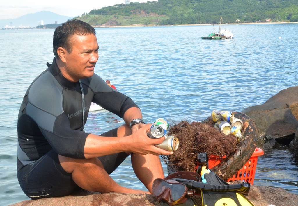 មិនត្រឹមតែរើសសំរាមនៅក្នុងព្រៃ Son Tra ប៉ុណ្ណោះទេ លោក Dao Dang Ngoc Trung ថែមទាំងបានរើសសំរាមនៅបាតសមុទ្រទៀតផង។ ដើមឡើយ លោកជាគ្រូបង្វឹកកីឡាហែលទឹក ហើយគាត់តែងតែចំណាយពេលមួយម៉ោងរាល់សប្តាហ៍ដើម្បីមុជទឹកនៅក្រោមសមុទ្រដើម្បីប្រមូលសំរាម។ លោក Trung បាននិយាយថា មានដបប្លាស្ទិចជាច្រើនដែលជាប់នឹងថ្មប៉ប្រះទឹកផ្កាថ្ម បណ្តាលឱ្យផ្កាថ្មងាប់នៅពេលដែលត្រូវបានជះដោយសំរាម។ គាត់ក៏បានរើសដបប្លាស្ទិចផលិតកាលពី ២០ ឆ្នាំមុន ដែលជាប់នៅក្នុងសមុទ្រដែរ។