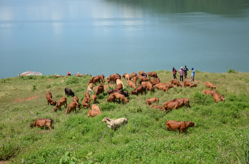 ប្រជាជនក្នុងភូមិជំរុញការងារបង្កបង្កើនផល។ ជាក់ស្ដែងគឺហ្វូងគោនៅក្នុងភូមិ