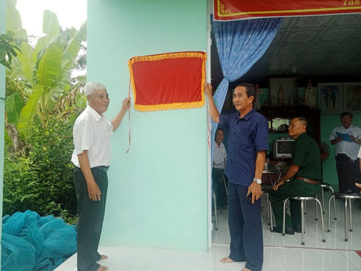 លោកឧត្តមសេនីយ៍ត្រី Le Thanh Son (ខាងឆ្វេង) ប្រគល់ផ្ទះមេត្តាធម៌ថ្មីជូនយុទ្ធមិត្ត (រូបថត៖ VOV) |