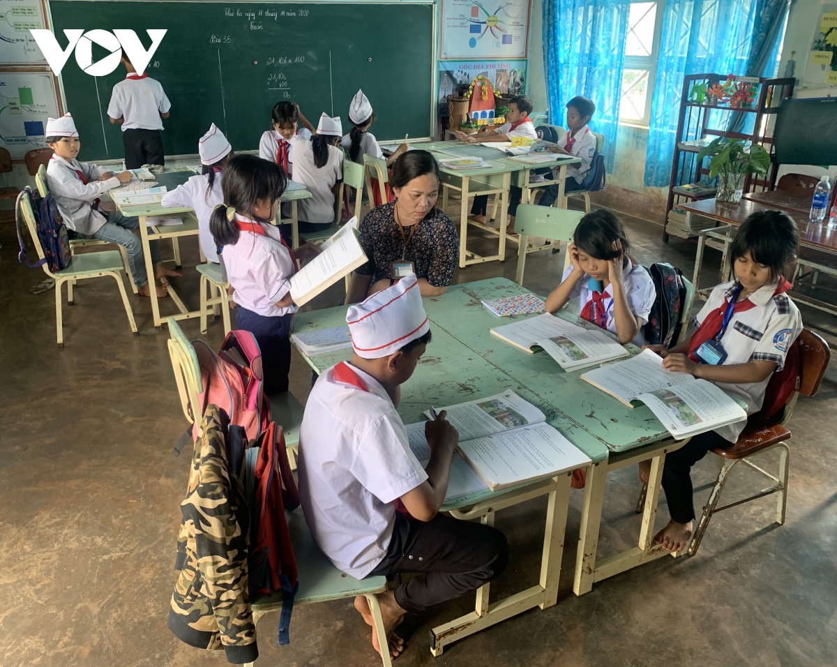 ថ្នាក់បង្រៀនរបស់អ្នកគ្រូ Phan Thi Khanh នៅភូមិ Nga Yo ស្រុក Ia Grai ខេត្ត Gia Lai។ (រូបថត៖ VOV) |