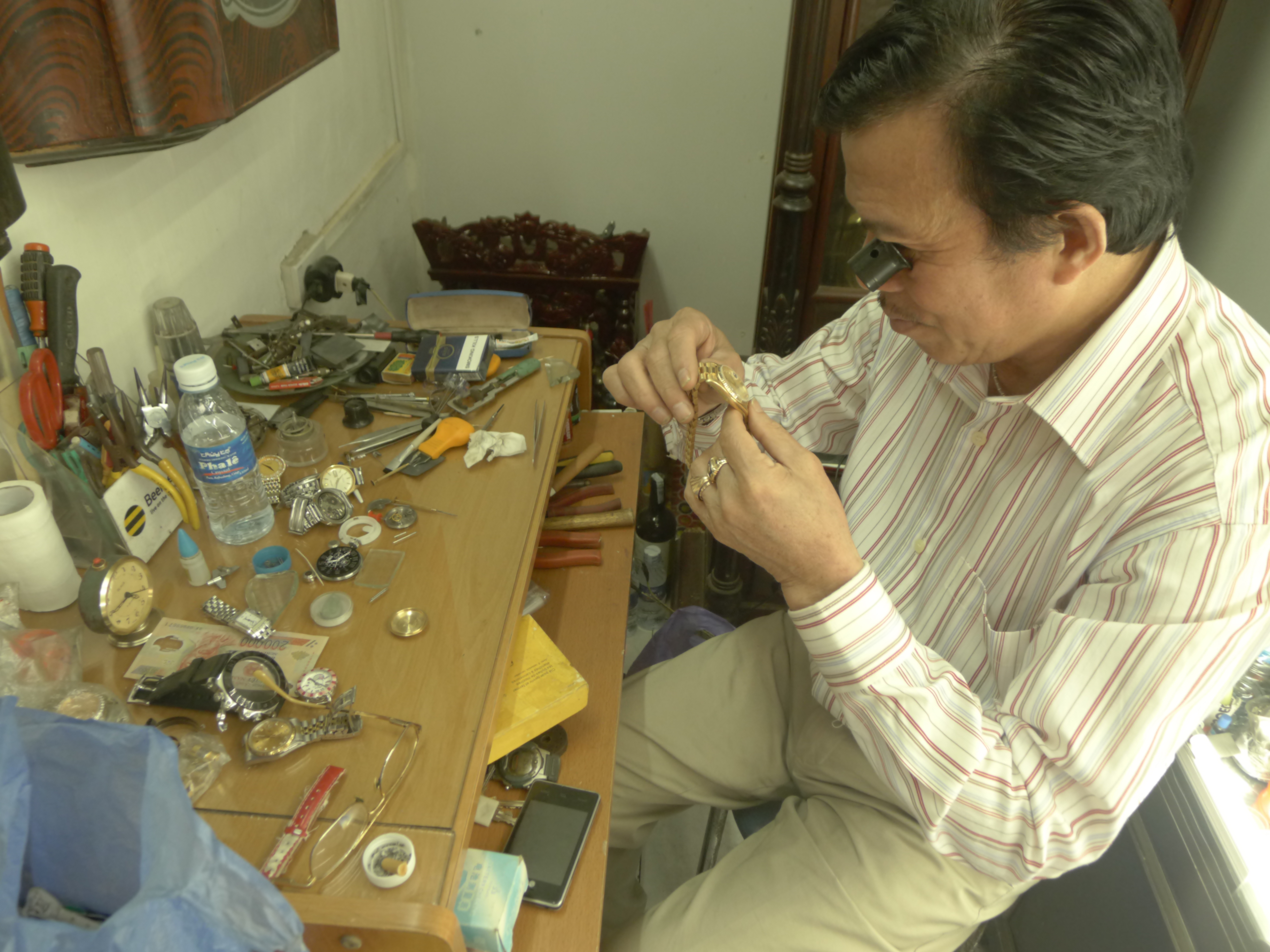 | លោក Tran Ngoc Dinh កំពុងជួសជុលនាឡិកាដៃ Rolex (Image: VOV World) |